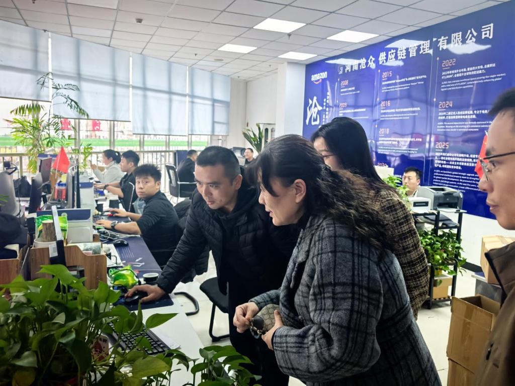 为精准对接跨境电商行业人才需求,拓宽毕业生就业路径。2026 年 3 月 23 日,我院党总支书记吴琼艳带领学院就业工作领导小组成员王三平、王雨、李坤,赴郑州沧众跨境电商有限公司进行交流座谈,